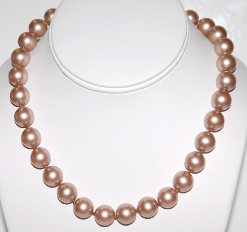 Genuine Swaroski Crystal Pearl Necklace POWDER-ALMOND 12mm Away with the lounge wear you putter around the house in. Time to dress up. put on your makeup and add the sparkle of jewellery. This pearl necklace with a beatiful luster will give you an attractive décolleté add a touch of luxury to the romantic you.